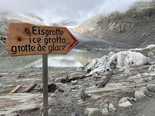 The Furka Pass takes us past Hotel Belvédère, famous from James Bond's Goldfinger. The hotel stands empty, windows boarded up, its grandeur gone. The Rhone Glacier has receded. Just behind the souvenir shop was the Eisgrotte, supposedly “temporarily closed for maintenance”. The truth is more poignant: there is no ice left. All that remains is a pile of white cloths that were supposed to slow down the melting. Researchers explain that this is a false solution: good for marketing, but ineffective.